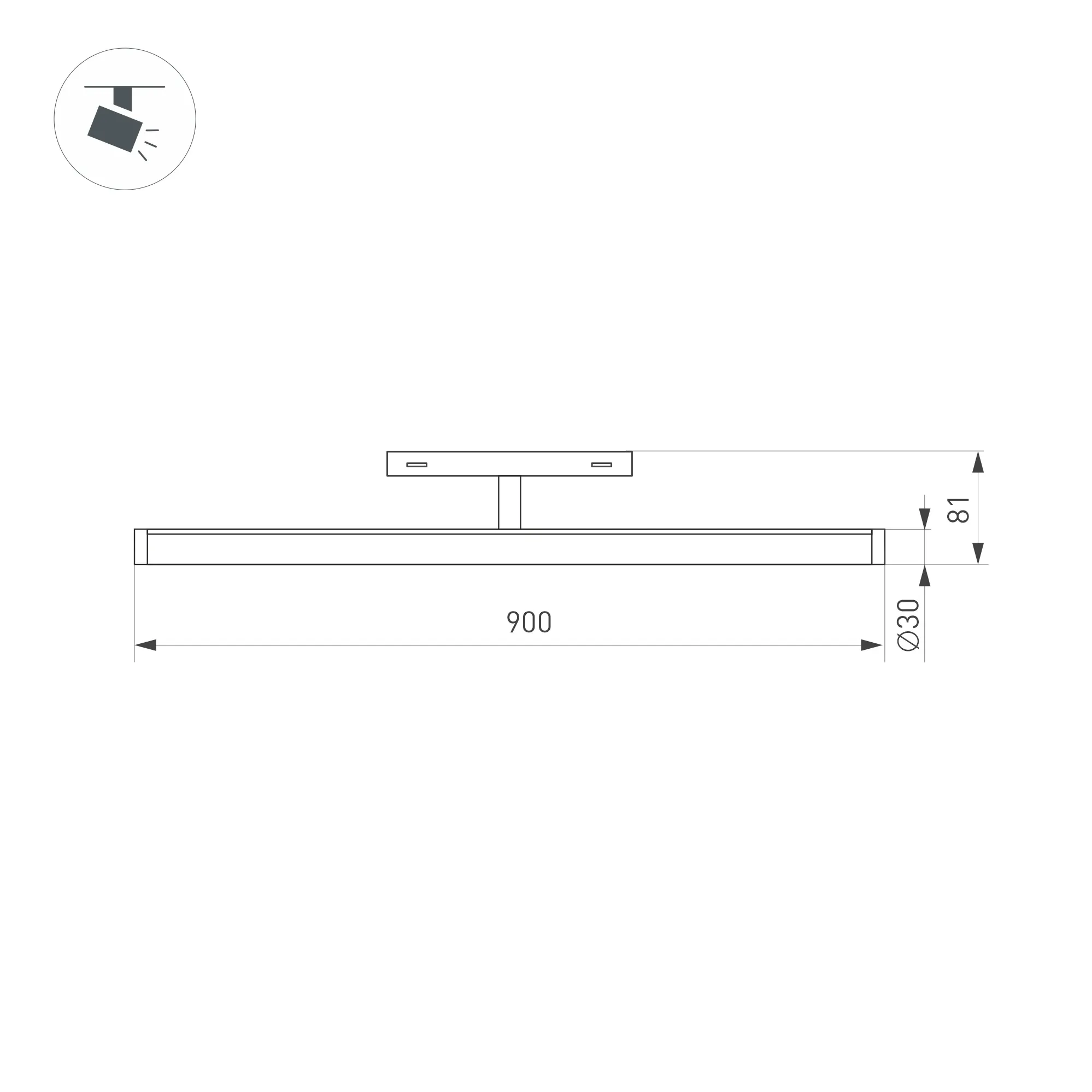 Светильник для магнитных треков MAG-ORIENT шириной 26 мм. Мощность 30 Вт, св. поток 2600 лм, 90 лм/Вт, дневной 4000 K, CRI>90, угол 180°, напряжение питания 48 В. Черный фигурный корпус из алюминия, экран поликарбонат, степень защиты IP20. Размер: диаметр 30 мм, длина 900 мм, высота 81 мм. Монтаж на трек MAG-ORIENT. Пульсация <1%.