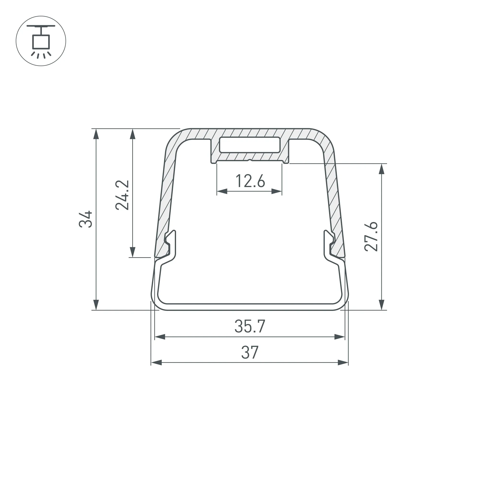 Комплект профиля с экраном и заглушками. Подвесной профиль трапециевидной формы с объемным матовыми экраном из поликарбоната идеально подходит для основного освещения и создания дизайнерских светильников. Цвет - черный RAL9004 (порошковая окраска). Габаритные размеры (L×W×H): 2000x37x34 мм. Ширина площадки для ленты 12,6 мм. Аксессуары приобретаются дополнительно.