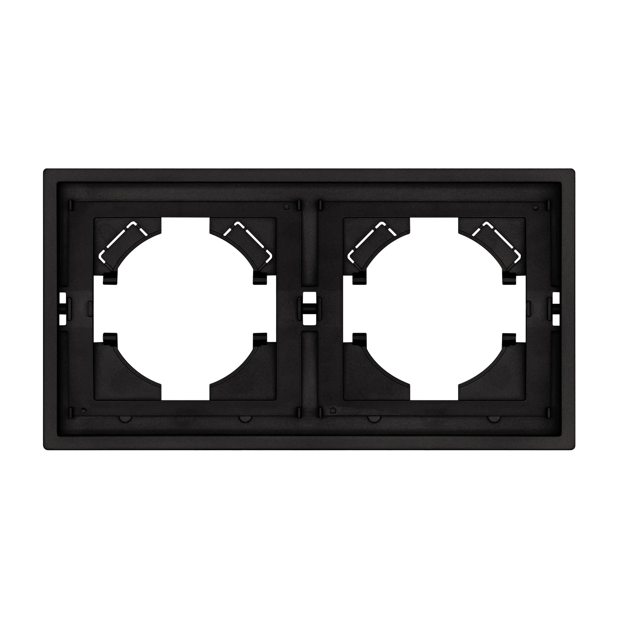 Рамка пластиковая на 2 поста, под встраиваемый механизм. Цвет - матовый черный, с Soft-Touch покрытием. Уровень герметичности IP20. Ориентация монтажа горизонтальная.